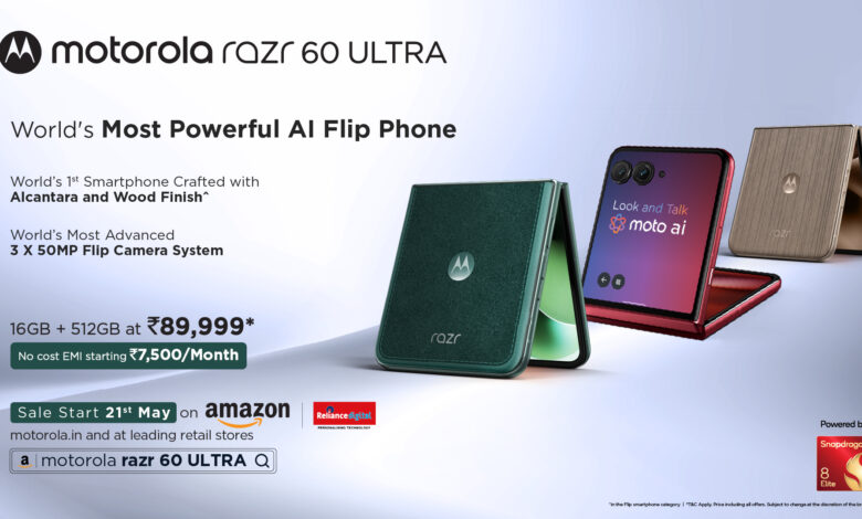 Speaking on the launch, Mr. T.M. Narasimhan, Managing Director, Motorola India said “With the motorola razr 60 ultra, we’re proud to introduce a device that perfectly blends iconic design with next-gen intelligence. Powered by an incredibly powerful processor and our most advanced moto AI capabilities, the razr 60 ultra transforms the way users interact with their smartphone—making it smarter, more intuitive, and deeply personal. Its advanced triple 50MP camera system sets a new standard for imaging in the segment, while the ultra-premium design underscores our commitment to combining style with substance. This launch is a bold stride in our mission to deliver meaningful innovation to the flagship smartphone segment, aligned with our vision of Motorola as a true lifestyle tech brand.”
