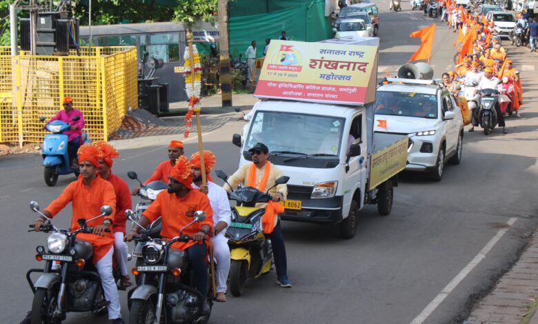 फोंडा (गोवा) – कल से फोंडा, गोवा के अभियांत्रिकी महाविद्यालय के मैदान पर होनेवाले ‘सनातन राष्ट्र शंखनाद महोत्सव’ की जनजागृति हेतु आज एक ऐतिहासिक एवं भव्य वाहनफेरी निकाली गई । यह वाहनफेरी फोंडा स्थित सनातन आश्रम से फर्मागुडी तक निकली, वहीं दूसरी ओर देश के कोने–कोने से महोत्सव हेतु आनेवाले सैकडों वाहन पत्रादेवी, काणकोण आदि सीमा–रेखाओं द्वारा गोवा में प्रवेश कर सुसज्जित फेरी में सहभागी हुए । दोपहिया, चारपहिया और बस गाडियों पर फहराते भगवा ध्वज तथा मुख से गूंजते ‘हर हर महादेव’, ‘सनातन धर्म का विजय हो’, ‘जयतु जयतु हिन्दुराष्ट्रम्’ जैसे नारों से संपूर्ण गोवा भगवामय हो गया ! इन तेजस्वी जयघोषों से केवल मार्ग ही नहीं; अपितु जन–मानस भी भर गया । सर्वत्र एक ही स्फुरण उत्पन्न हुआ – ‘सनातन राष्ट्र का शंखनाद !’ यह फेरी सनातन संस्कृति के पुनरुत्थान हेतु हिन्दू राष्ट्र की दिशा में उठाया गया अगला कदम है !