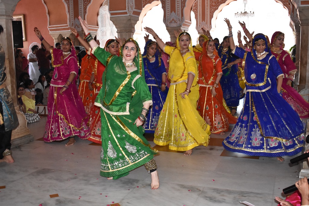 The month-long Cultural Heritage Training Camp at City Palace Jaipur concluded with great enthusiasm and celebration. At the closing ceremony, participants captivated the audience with mesmerizing performances of traditional art forms such as Dhrupad, Kathak from the Jaipur Gharana, Rajasthani folk dance, and flute recitals. The exhibition featuring ancient techniques like Ala Gila, Araish (fresco), Thikri art, and traditional paintings created by the participants during the camp also received much appreciation from visitors. Additionally, participants gained knowledge of Vedic astrology during the month-long camp.