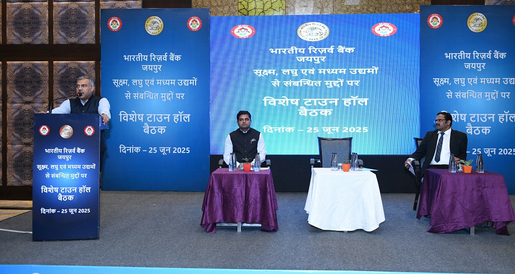 सूक्ष्म, लघु और मध्यम उद्यमों ( MSMEs) के अद्वितीय योगदान के बारे में जागरूकता बढ़ाने के उद्देश्य से संयुक्त राष्ट्र महासभा ( UNGA) द्वारा 27 जून को ’सूक्ष्म, लघु और मध्यम उद्यम दिवस’ घोषित किया है। इसी उपलक्ष्य में भारतीय रिजर्व बैंक द्वारा 25 जून 2025 को जयपुर में सूक्ष्म, लघु एवं मद्यम उद्यमों हेतु विशेष टाउन हॉल बैठक का आयोजन जयपुर के होटल मे किया गया। कार्यक्रम का उद्घाटन नवीन नंबियार, क्षेत्रीय निदेशक भारतीय रिजर्व बैंक, जयपुर द्वारा किया गया। अपने उद्घाटन भाषण में उन्होंने देश की अर्थव्यवस्था, रोजगार सृजन एवं असमानता को मिटाने मे एमएसएमई क्षेत्र को महत्वपूर्ण बताया। उन्होंने सभी प्रतिभागियों को एमएसएमई क्षेत्र के लिए डिजिटल और लागत प्रभावी ऋण की सुविधा के लिए आधुनिक तकनीकी नवाचारों के महत्व पर भी चर्चा की। उन्होंने उद्यमियों को अपने व्यावसायिक गतिविधियों के लिए बैंकिंग चैनल का उपयोग करके डिजिटल पदचिन्हों को बढ़ाने का भी आग्रह किया। बैठक के दौरान विकास अग्रवाल, उप महाप्रबंधक, भारतीय रिजर्व बैंक, जयपुर, ऋतु गौर, महाप्रबंधक, भारतीय स्टेट बैंक, एम अनिल अंचल प्रमुख, बैंक ऑफ बड़ौदा, दीपक गांधी, जोनल प्रबन्धक, ए यू स्माल फायनेंस बैंक, ने सभी प्रतिभागियों को संबोधित किया गया। कार्यक्रम में गौरव जोशी, निदेशक, सूक्ष्म, लघु व मध्यम उद्योग विकास कार्यालय, राजस्थान, शिल्पी आर पुरोहित, जिला उद्योग केंद्र, जयपुर राजस्थान, डॉ. के.एल. जैन, अध्यक्ष, फेडरेशन ऑफ एसोसिएशन ऑफ स्माल इंडस्ट्रीज, राजस्थान, एवं महिला उद्योग संगठनो के प्रतिनिधियो, रिजर्व बैंक, सहित अन्य बैंको के प्रतिनिधियो, विभिन्न एमएसएमई इकाइयों से उद्यमियों, संभाव्य उद्यमियों एवं एमएसएमई क्षेत्र में सेवारत प्रमुख बैंको के प्रतिनिधियों सहित लगभग 250 प्रतिभागियो ने भाग लिया।