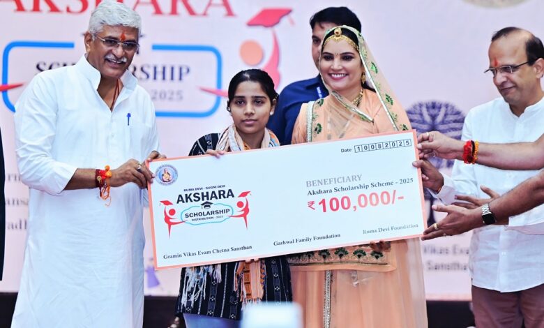 रूमा देवी फाउंडेशन व गढवाल फैमिली फाउंडेशन द्वारा एस एन मेडिकल कॉलेज ऑडिटोरियम में अक्षरा छात्रवृत्ति का पांचवा संस्करण आयोजित हुआ जिसमें 25 हजार से 1 लाख की छात्रवृत्ति व 25 लाख के रूमा देवी सुगणी देवी स्कॉलर्स अवॉर्ड का पहला चरण केन्द्रीय पर्यटन व कला मंत्री गजेंद्र सिंह शेखावत व राजस्थान के संसदीय कार्य व न्याय मंत्री जोगराम पटेल की अध्यक्षता में आयोजित हुआ। गजेन्द्र सिंह शेखावत ने जरूरतमंद व हुनरमंद विद्यार्थीयों को सम्मान प्रदान करते हुए कहा कि बिरले लोग ही ऐसे होते हैं जो असाधारण होते हुए भी साधारण बनकर समाज के पिछड़े लोगों को आगे बढ़ाने के लिए संकल्प लेकर काम कर रहे है,और वो रूमा देवी ने आज यहां साकार किया है। उन्होंने अपनी निजी आय से दो विद्यार्थीयों को छात्रवृति समर्पित की।