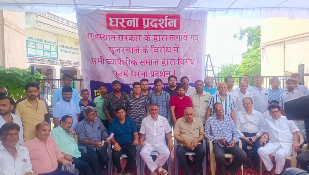 उपमुख्यमंत्री को सौंपा ज्ञापन : व्यापारियों ने यूज़र चार्ज वापस लेने की मांग करते हुए उपमुख्यमंत्री दीया कुमारी को ज्ञापन भी सौंपा है और चेतावनी दी है कि यदि आदेश वापस नहीं लिया गया तो धरना और बंद अगली सूचना तक जारी रहेगा।