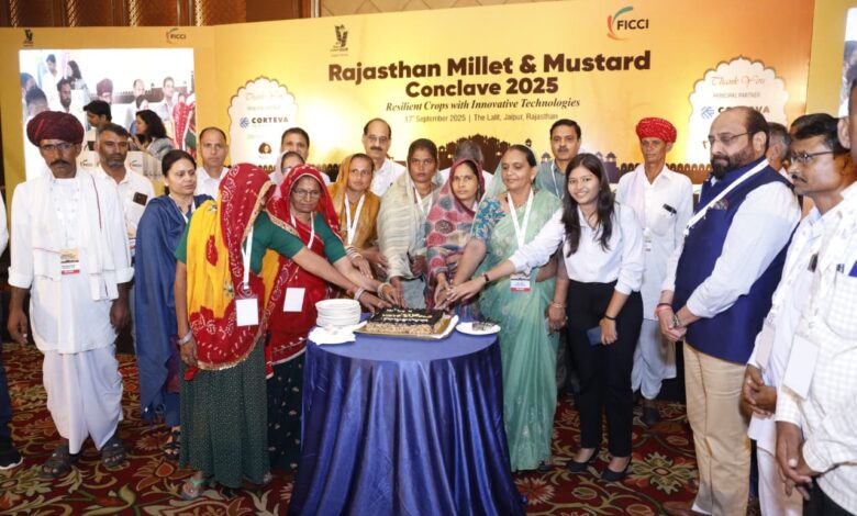 The conclave also featured two plenary sessions. The first session on “Millets – Unlocking Potential for Sustainable Agriculture” brought together experts to discuss the current status of the millet value chain, its challenges and emerging opportunities. The second plenary session on “Mustard for India’s Edible Oil Security: Innovations, Markets and Policy Pathways” focused on innovations, adoption of hybrid seeds, and advanced farming practices to enhance mustard productivity. On the occasion a bajra cake cutting ceremony was also held by women farmers. The Vote of Thanks on the occasion was delivered by Director & Head, FICCI Rajasthan State Council, Mr. Atul Sharma.