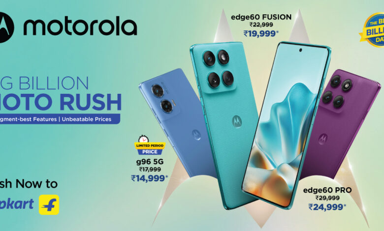 Motorola, a global leader in mobile technology and India’s leading AI smartphone brand, today announced its biggest festive line-up of premium and mid-range smartphones at never-before prices for Flipkart’s Big Billion Days Sale 2025. From the world’s most immersive AI-powered motorola edge 60 PRO and motorola edge 60 FUSION to bestselling moto g series smartphones, and the iconic motorola razr 60 series, Motorola is set to redefine festive shopping this season. The sale goes live from 23rd September, 00:00 hrs for early access customers and from 22nd September onwards for all consumers, exclusively on Flipkart. All devices will be available at attractive Big Billion Days prices throughout the sale period.