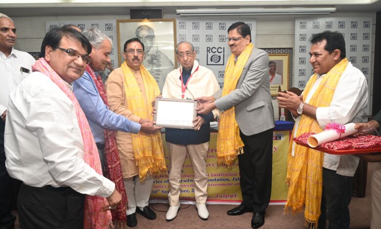 राजस्थान चैंबर ऑफ कॉमर्स एंड इंडस्ट्री के अध्यक्ष डॉ. के.एल. जैन को व्यापार, वाणिज्य एवं उद्योग क्षेत्र में उनके अतुलनीय योगदान और उत्कृष्ट नेतृत्व के लिए प्रतिष्ठित “लाइफ टाइम अचीवमेंट अवार्ड” मानव रत्न से सम्मानित किया गया। यह सम्मान उन्हें उनके पिछले 55 वर्षों से निरंतर सेवा, समर्पण और अद्वितीय नेतृत्व क्षमता के लिए इंटरनेशनल न्यूज़ एण्ड व्यूज़ कारपोरेशन (INVC), USA व नई दिल्ली द्वारा चैंबर भवन, जयपुर में राजस्थान चैम्बर एवं भारद्वाज फाउंडेशन व इंटरनेशनल न्यूज़ एण्ड व्यूज़ कारपोरेशन के संयुक्त तत्वावधान में आयोजित 43वें इंडस्ट्री–अकादमिक इंटरफेस कार्यक्रम के दौरान प्रदान किया गया। अवार्ड सलेक्शन कमेटी के चेयरमैन डॉ. डी. पी. शर्मा ने बताया कि कुल 270 नामांकन में से डॉ. जैन को उनके असाधारण सेवा कार्यों और उपलब्धियों के आधार पर इस सर्वोच्च सम्मान हेतु चयनित किया गया।