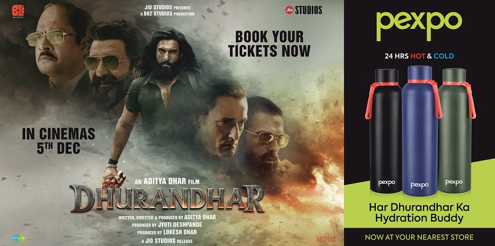 Pexpo, a leading Indian brand in sustainable steel bottle manufacturing, today announced its strategic association with the highly anticipated film “Dhurandhar”, starring youth icon and Bollywood superstar Ranveer Singh. The film is set to hit theatres on 5th December 2025. As a proudly Made in India brand driving self-reliant manufacturing, Pexpo continues to champion homegrown innovation through such impactful collaborations.