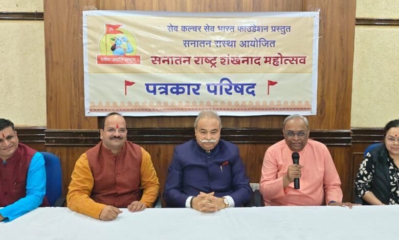 देश में सुरक्षा, संस्कृति और शौर्य का पुनर्जागरण करने के उद्देश्य से भारत को विश्वकल्याणकारी ‘सनातन राष्ट्र’ के रूप में आगे बढ़ना अत्यावश्यक है। इसी संदेश के प्रसार हेतु ‘सेव कल्चर सेव भारत फाउंडेशन’ प्रस्तुत और ‘सनातन संस्था’ के आयोजन में भव्य ‘सनातन राष्ट्र शंखनाद महोत्सव’ का आयोजन 13 एवं 14 दिसंबर 2025 को नई दिल्ली (इंद्रप्रस्थ) के ‘भारत मंडपम’ में किया जा रहा है। यह जानकारी सनातन संस्था के प्रवक्ता श्री अभय वर्तक ने दी।