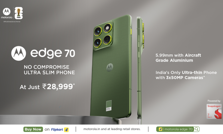 New Delhi, 23rd December 2025: Motorola, a global leader in mobile technology and innovation and India’s leading AI smartphone brand#, today announced the sale of its thinnest and most uncompromised smartphone — the motorola edge 70 — at an effective price of just ₹28,999*. Designed to redefine what an ultra-slim smartphone can deliver, the motorola edge 70 combines an industry-leading 5.99 mm ultra-thin design with flagship pro-grade cameras, advanced AI intelligence, long-lasting battery life, and military-grade durability. Powered by the powerful Snapdragon® 7 Gen 4 Mobile Platform, the motorola edge 70 introduces next-generation performance and intelligence with a dedicated AI key. The chipset delivers faster CPU and GPU performance along with a significant boost in on-device AI capabilities, enabling seamless multitasking, smooth gaming, and intelligent everyday experiences. Users can choose between moto ai 2.0, Microsoft Copilot, Google Gemini, and Perplexity, unlocking true multi-platform AI freedom. The device is equipped with 8GB LPDDR5X RAM and 256GB UFS 3.1 storage, supported by an advanced vapor-chamber cooling system for sustained performance.